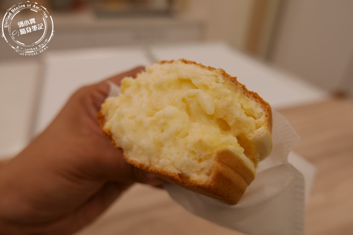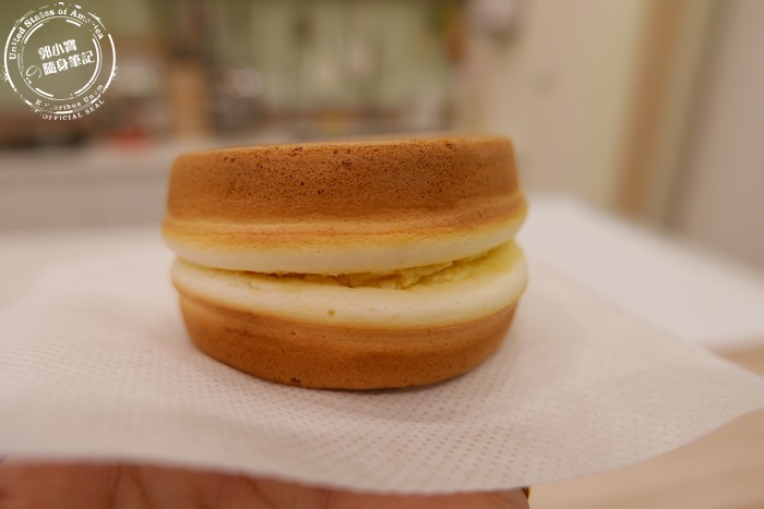 最誇張最炸裂的就是這個卡士達,這個似乎上下層的蛋糕,都已經地基不穩了,這個就肯定爆漿的,那卡士達內餡太不受控制了,不過他們家的卡士達調的很好,艾編超愛,香草味道香濃,奶味溫馴厚實,柔軟的在嘴裡化開,濕潤香甜完全不膩口,齒頰留香意猶未盡,卡士達跟外面的蛋糕搭配吃起來,讓外面這層蛋糕感覺像是從日本紅到台灣的厚鬆餅一樣,吃起來的感覺真的很像,非常的蓬鬆柔軟,艾編在日本吃過厚鬆餅,但覺得蛋腥味有點重,他們家的蛋糕體不會喔,沒有蛋腥味,留下來的都是滿滿的香氣,自然的香甜,卡士達不愧是店內的人氣招牌,這個大家一定要嚐嚐看。 |