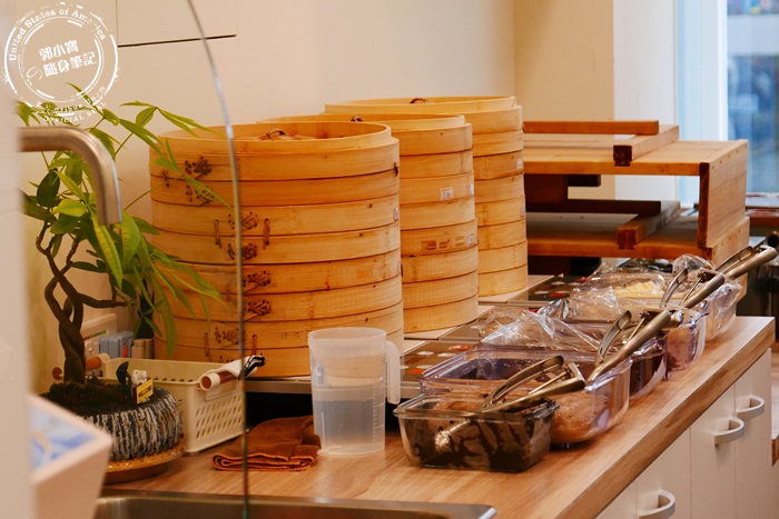 等餐過程中,發現這一堆蒸籠裡,原來是放置製作好的紅豆燒,躺在裡頭保溫唷,太可愛了吧!,所以大家如果外帶回家冷掉了,可以用蒸的方式讓他回溫,就會像新鮮剛出爐的一樣喔,蒸籠前方那一整排的餡料,都是店家手工製作的,手作的堅持,連紅豆燒的麵糊都是新鮮現打的(講的好像現打果汁一樣XD) |