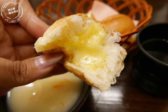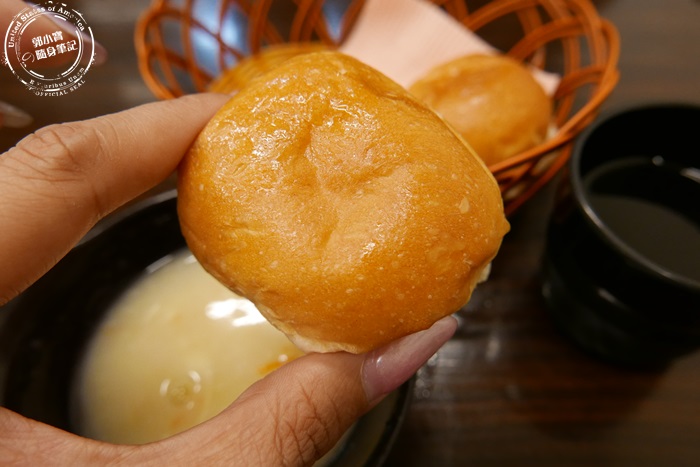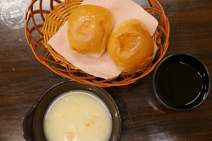 點了兩份餐,所以有兩顆餐包,自取濃湯跟飲料,飲料艾編有試喝了紅茶跟麥茶,味道都蠻淡的,甜味也是淡淡的,算是冰涼解渴的飲料,說不上好喝,如果甜度比較的話,麥茶贏了紅茶一點。 |
