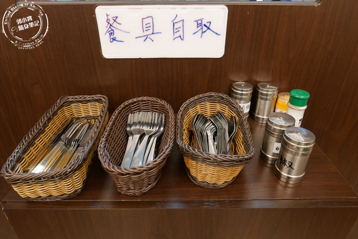 餐具跟調味料放在一進門右手邊的平台上,擺放的整齊乾淨,胡椒還有鹽巴,調味料齊全,一些牛排常用的醬料,每桌的桌上也都有,店家都設想的很周到唷! |