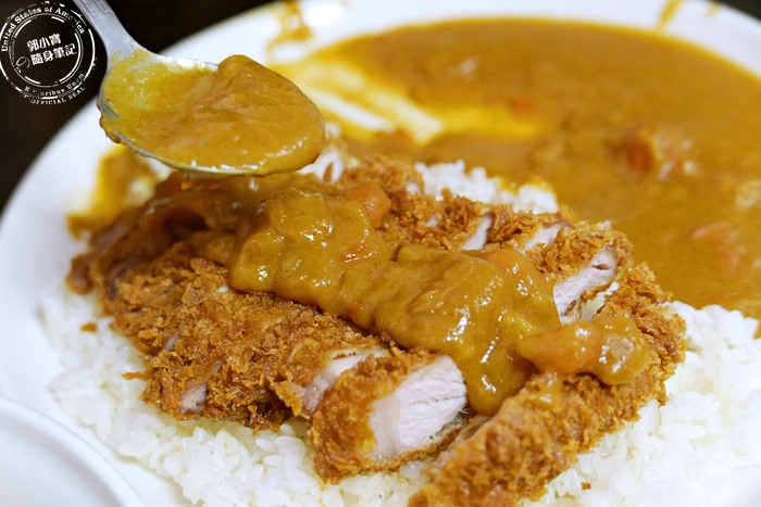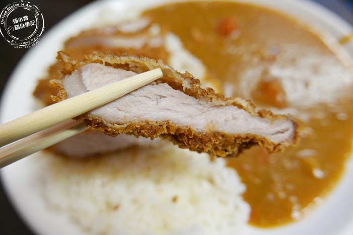 為了讓豬排增加濕潤,只好大量的淋上咖喱醬,希望能中和一下在嘴裡的口感與味道,好吧有從剛剛的不及格升級到及格邊緣了。 |