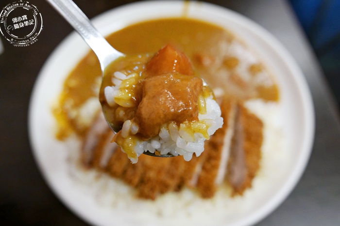 撇開剛剛那一塊口感不優的豬排,他們家的咖喱味道超級好,濃稠度適中重點香氣非常濃郁,馬鈴薯幾乎燉煮的都化在咖喱裡頭,連胡蘿蔔也都是輕輕一抿就會化掉,最特別的是還有塊狀的肉丁,咖喱裡頭的豬肉就很好吃,有種吃滷肉的感覺,整個咖喱鹹香,甜味十足,在嘴裡濃郁厚實,搭配煮的香Q的白米飯,完全一口接著一口停不下來,實實在在的道地日本風味呀!但艾編還是衷心的建議點咖喱飯就好,豬排令人不敢恭維。 |