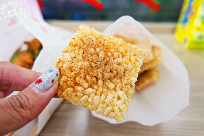 鍋粑老闆娘說就是像米香一樣,還真的蠻類似的,只是這炸過的口感比較硬脆酥香,感受到原本米的香甜味,撒上胡椒、辣椒粉,味道就很鹹香,像餅乾一樣的脆度,很適合看電影的時候吃,而且份量也蠻多的,如果覺得太硬還可以把它放進去滷味裡頭吸收湯汁,不同的風味,大家可以嘗試看看。 |