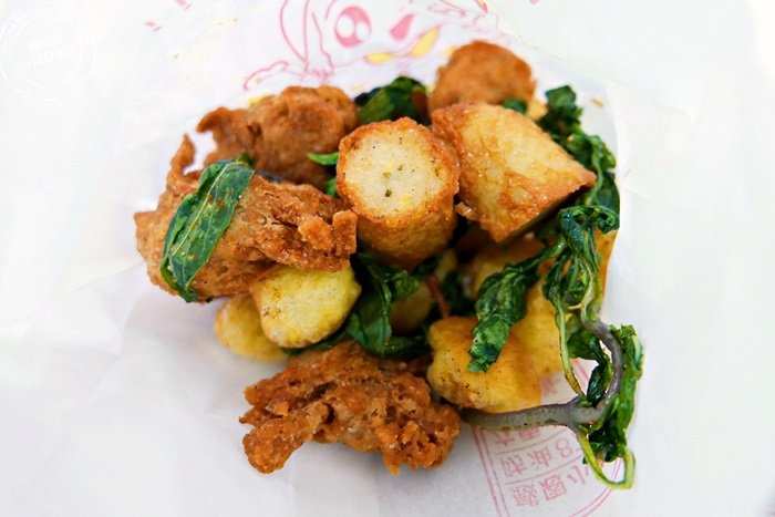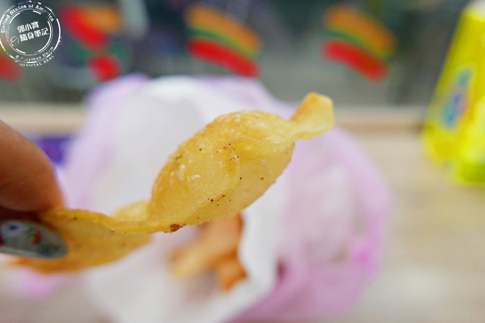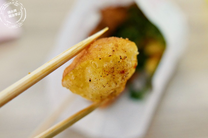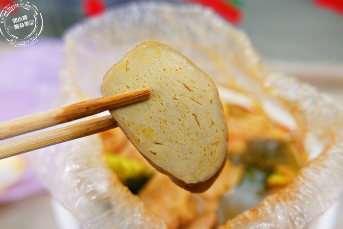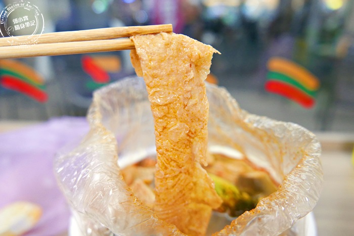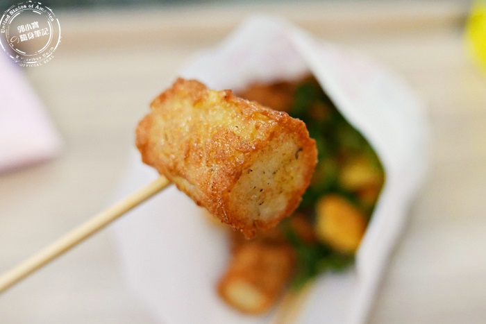 最特別的就是這個,鹹酥雞攤沒見過的,艾編也是因為朋友的大力推薦,就點來試吃看看,這乳酪本來的形狀是有點像麻花捲的樣子,只是比較粗,吃起來的口感有點像是在吃油條,口感軟脆的油條,孔洞沒有油條那麼大,味道真的是很濃的乳酪味,一種臭到發香的味道,愛吃乳酪的會很愛,艾編就蠻喜歡的,不過小小一口還蠻鹹的,跟滷味搭配著吃就還蠻好吃的。