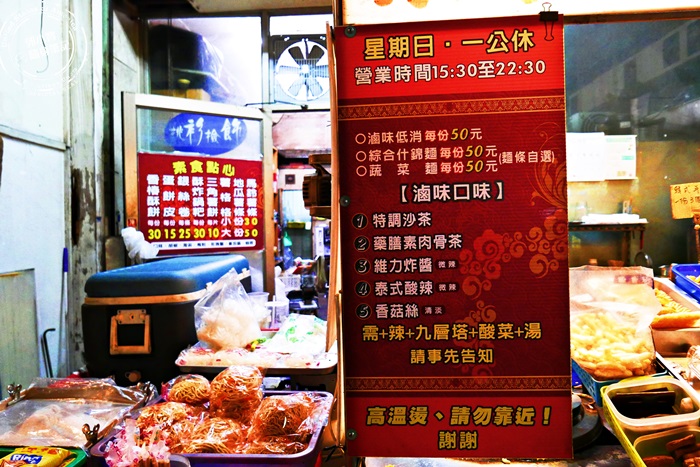 艾編的好朋友因為從小就吃素的關係,在高雄可是有不少的口袋名單,不過一定都是素食,這家小吃攤是她的愛店之一,我們相約要來個滷味聚會,沒想到要來這家踩踏,還蠻坎坷的,每次約好了時間要來,不是剛好公休,就是店家剛好放長假,終於終於~最終有約成功,喜極而泣呀!位於大社中山路上,小吃美食多到數不清,雖然這滷味攤位沒有明顯大招牌,外表看起來也走比較低調路線,但仍然有很多的忠實顧客上門,艾編第一次來還騎過頭沒發現,大家要來的話,記得眼睛睜亮點。 |