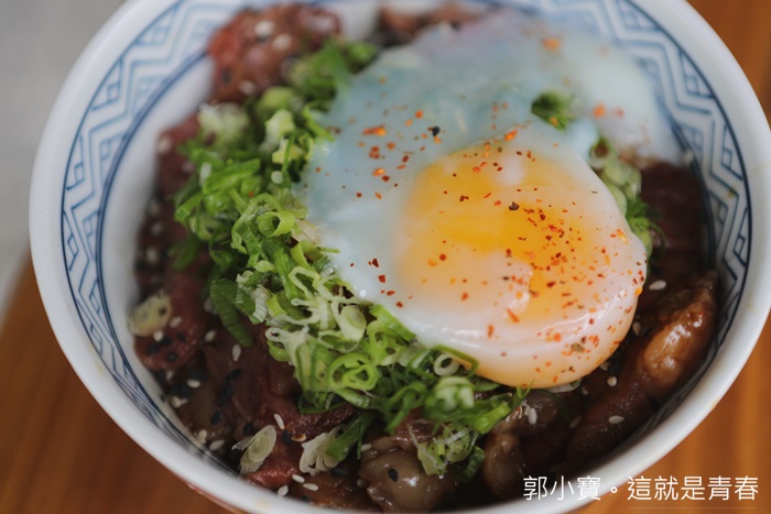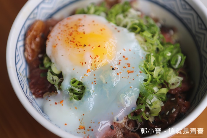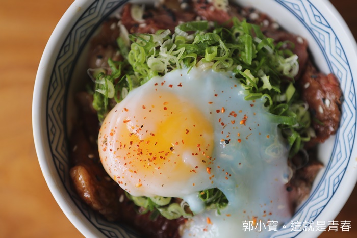 女性友人點的牛逼燒肉店看起來也太誘人了,那一顆半熟蛋真的看起來太厲害了,底下鋪了一層厚厚的牛肉片後在撒上一大把蔥花,最後在放上一顆半熟蛋,這真的太牛逼了! |