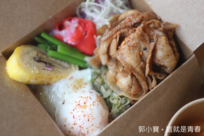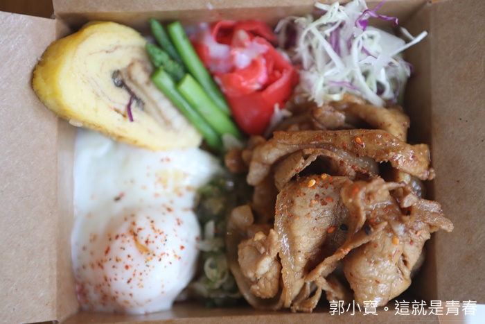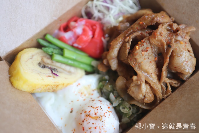一份99元的日式便當除了有精緻的小菜根湯品以外,便當裡面還有鰻魚蛋捲跟新鮮蘆筍蔥鹽等小菜,半熟蛋也偷偷藏在裡面,重點燒肉給的相當多,現點現烤的肉片香氣真的十分濃郁,這一個便當盒看起來就是美味啊!! |