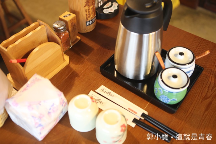 餐具都準備齊全的放在桌上,每一個桌子上都還有準備熱雞湯讓客人享用,熱雞湯是免費的,這也太大方了吧,還有服務鈴也通通在桌子上。 |