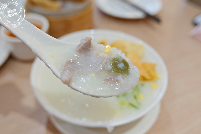 看不到米粒的粥,真的很道地,廣東粥都是長這個樣子的,他們家的粥純白色澤,肉絲及皮蛋隨手撈都有,而且不馬虎的,很有味道,輕輕淡淡的,香氣十足而且肉質新鮮柔軟,粥喝起來鮮美滑順,有喝濃湯的感覺,挺舒服的,加點蔥花下去點綴,味道更棒。 |