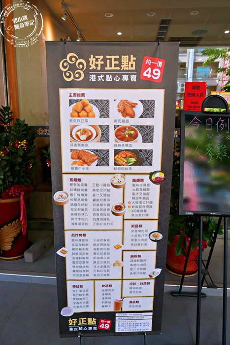 不用入內就可以看到這菜單寫滿滿的一大張,路過的行人發現這一家再看看菜單其實都會進去嚐鮮的,因為他們家除了照片吸引人,港點的種類更是多到不行,完全就是被均一價$49吸進來的,門面給人的感覺相當的不錯。 |