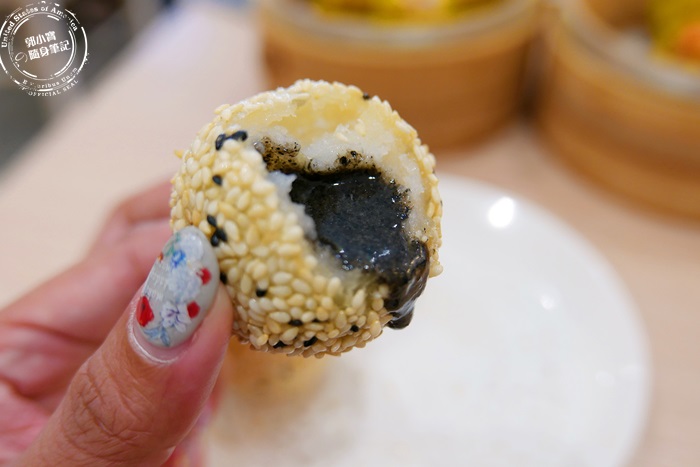 圓圓的超可愛的芝麻球,外表滿滿的黑白芝麻,炸過之後超級酥脆的,略略帶硬的口感,可以嚼出米的香甜味,還有濃濃的芝麻香味,裡頭的部分像是麻糬一樣,非常的軟黏,流瀉出來的芝麻餡滋味超棒的,香滑順口,濃濃的芝麻味,甜而不膩,熱熱吃香氣更棒。 |