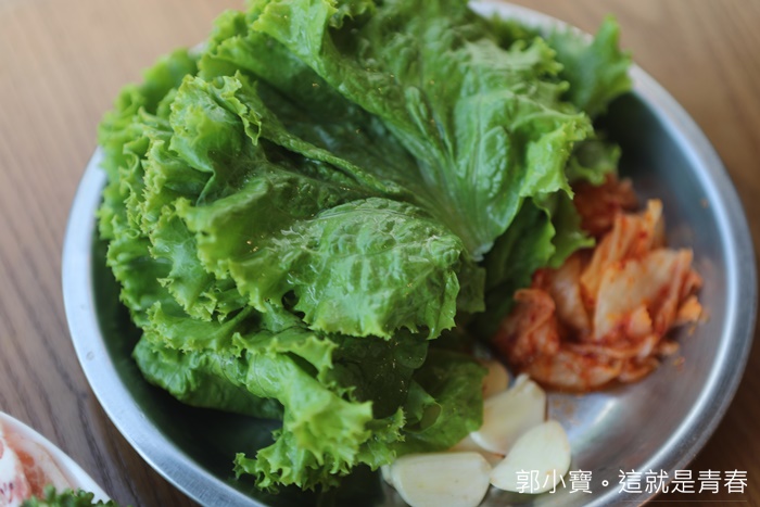 燒肉的好朋友生菜組合,他們家的生菜品質真都都很好,不僅多汁以外脆度也很棒,還有泡菜跟蒜頭可以搭配。 |
