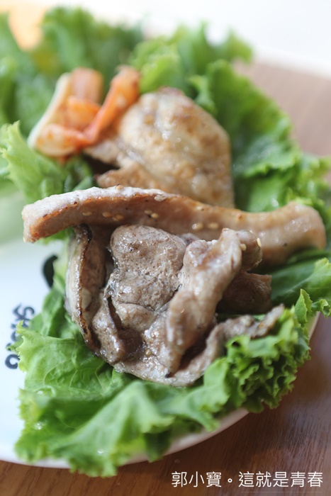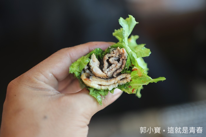 豬五花就是要包生菜阿,然後在搭配一些泡菜跟大蒜,包著一起吃真的超滿足的,你也可以跟我一樣把三種肉都包進去生菜,那口感真的非常棒,除了有豬五花的油脂混著生菜的水分還帶有豬頸肉的口感,超無敵的佩法XD |