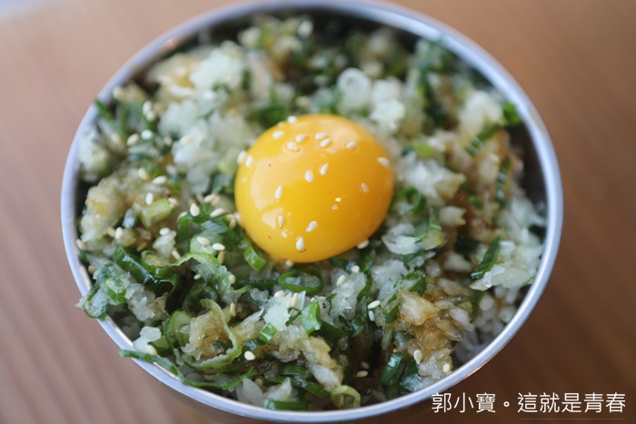友人吃的蔥醬丼飯,很多人都喜歡串燒店跟燒肉店的蔥醬,看看這整碗飯裡面滿滿的蔥醬就讓人口水直流,再搭配一顆生蛋黃就更誘人了,當天去上個廁所轉頭回來就被嗑完了一一