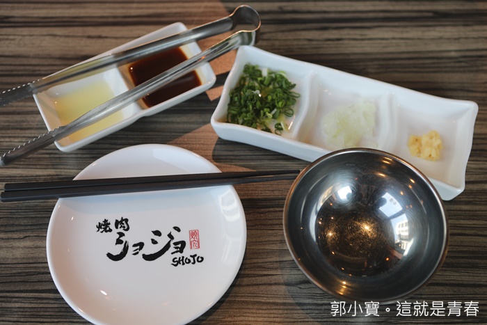 一上桌的時候餐具幾乎都已經準備好了,除了燒肉的調味醬以外還會有蔥薑蒜盤,碗盤都使用的還不錯,替換的速度也滿快的。 |