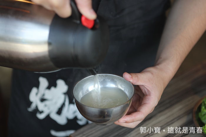 桌上的熱水瓶裝的是雞湯,是免費的,喝完會在幫客人補滿,雞湯喝起來溫潤順口,一進來就先給她喝個兩碗暖暖胃,我們一行四個人立馬瀏覽了菜單一輪就開始準備開殺了XD |