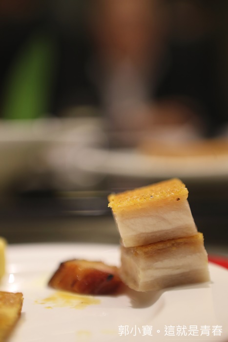 真心話就是這是我個人有史以來吃過最美味的燒肉了,真的很難形容它放入口里的滋味,那微酥的外皮搭配滿是油脂的肉品真的是絕妙的搭配,那肉汁真的超美味的,看起來厚厚的肥肉卻沒有過多的油且一點都不膩口,彷彿放在嘴裡就會融化般又帶點彈性,在嘴裡咀嚼真的太棒了,這一盤幾乎有一半都是我吃掉的。 |