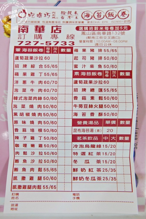 ‧您所在的位置: 郭小寶‧這就是青春 > 郭小寶全省食況轉播 > 日本美食景點輕旅行.桃太郎行程精選 > 『食記美食。高雄鳳山』吃的巧 (阿斯瑪) 海苔飯卷 (南華店) | 台灣味韓風紫菜包飯 | 當正餐、下午茶美味又便利 |
