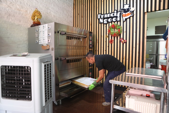 製作蛋糕的烤爐就放在一旁,似乎一直都在運轉中,飄出陣陣的香氣。 |