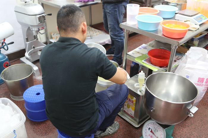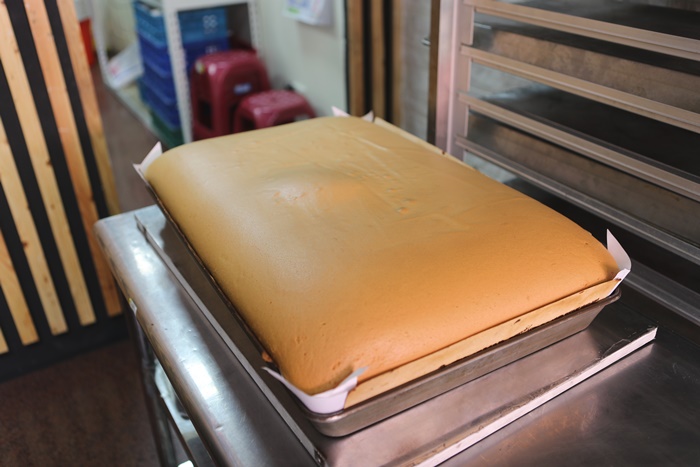 睛鴻一撇背板後的工作空間,感覺還滿乾淨的,工作人員說她們家的雞蛋都是用品質很好的雞蛋以外,成功的祕訣是蛋量比一般的古早味蛋糕來的多很多,所以自然香氣整個翻背提升。 |