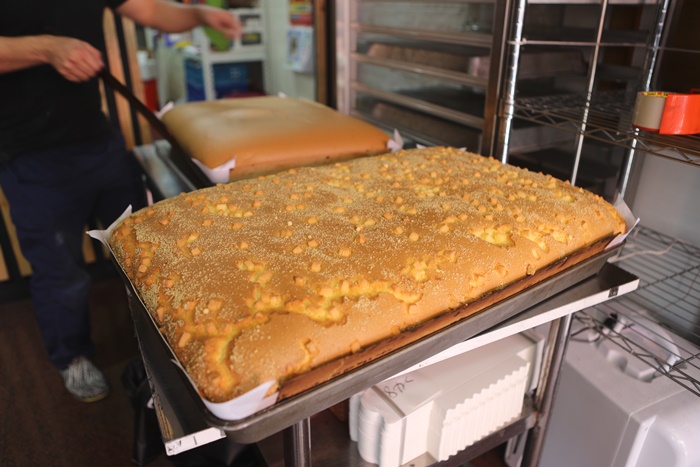 我的黃金原味古早味蛋糕熱騰騰出爐了,這樣一整片看起來超療癒的,一斤80元CP值真的非常非常的高。 |