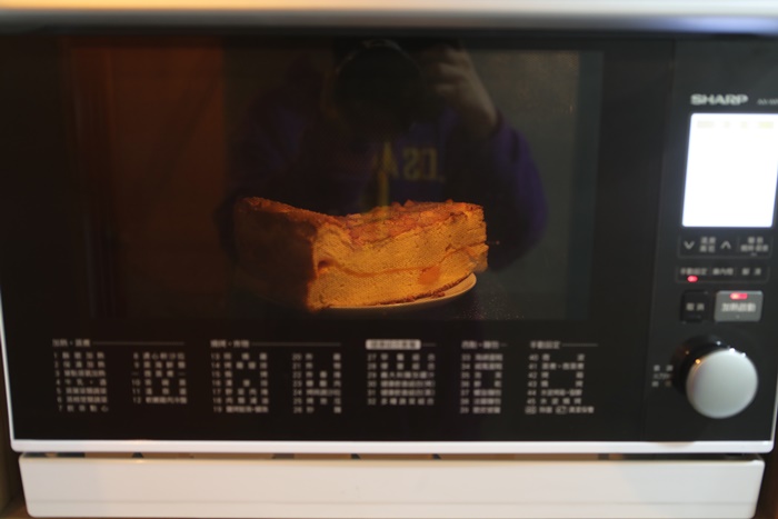 要回復到剛烤出來的方法有三種,熱烤、微波、還有利用電鍋用蒸的,我不知道這三種方法會不會導致蛋糕有不一樣的風味,所以我還是用烤的,烤到一半的時候幾乎整個家裏面就全部都是蛋糕鑲了。 |