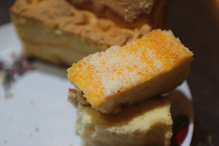 入口的口感綿密帶點濕潤,入喉部會卡喉嚨這一點我超級推薦,有點像是吃西式蛋糕跟波士頓蛋糕的平均點上,重點那滿滿的蛋香濃郁的要命,一整個越吃越順口沒辦法停下來,明明說吃一片就好但是還是默默地吃掉了半條之多,有點錯覺就像是吃長崎蜂蜜蛋糕加強版,下次來沾點蜂蜜試試看。 |