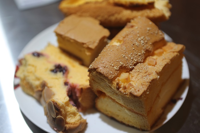 本來想說都吃一點點試試看,沒想過就默默兩大條四種口味各半斤的古早味蛋糕就吃到剩這樣,中午朋友來家裡就瞬間被掃光,還一直問我哪裡買的,一聽到一斤80那麼便宜的黃金原味還那麼好吃,一直吵著要去搶一下XDD |