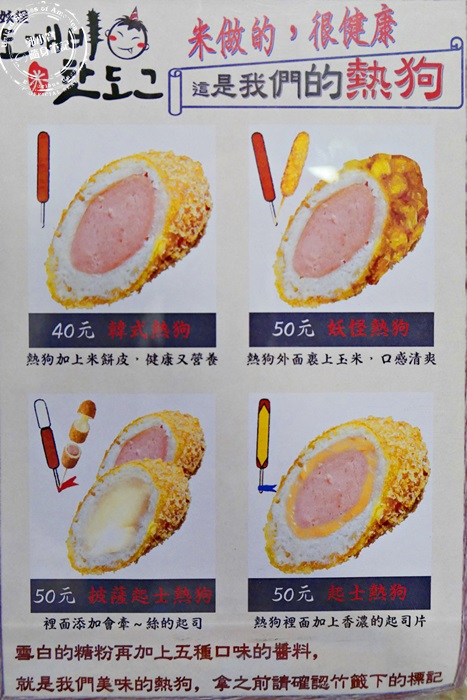 ‧您所在的位置: 郭小寶‧這就是青春 > 郭小寶全省食況轉播 > 日本美食景點輕旅行.桃太郎行程精選 > 『食記美食。高雄鼓山』妖怪米熱狗독깨비 | 韓國紅到台灣的起司熱狗 | 米做的麵衣健康美味創新口味學生超愛 |