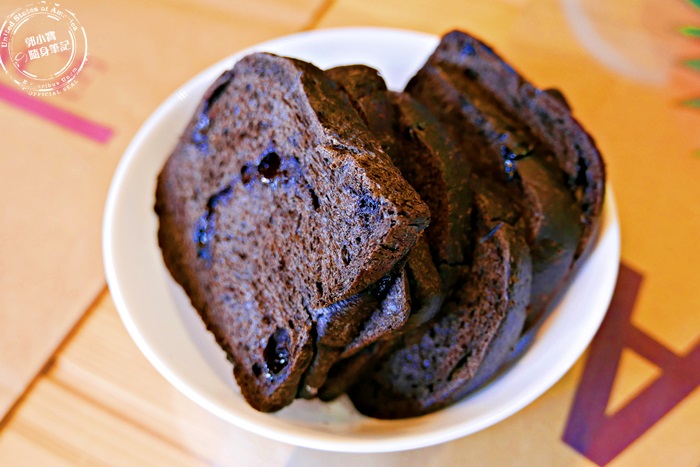 店家招待的黑吐司,其實也不曉得是招待的還是朋友點的,遲到的友人下去點完餐就拿了這盆上樓,剛烤好的溫溫的很舒服,原來是巧克力,店家使用進口的水滴巧克力製成的黑吐司,香醇風味加上裡頭濕潤的巧克力,濃郁帶苦甜的成熟氣息,大人小孩都愛吃,姐妹們都想買回家當隔天的早餐啦! |