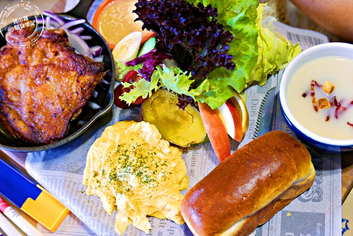 友人點的雞腿排餐,艾編有偷吃到雞腿肉,口感不是很軟嫩多汁的,算紮實有嚼勁,重點雞皮烤過的焦香風味實在經典,在嘴裡的香氣久久不能散去,無骨雞腿排本身就非常的有味道,搭配旁邊這些清爽的蔬菜,滑蛋以及吐司,整體吃起來很不錯也很飽足唷! |