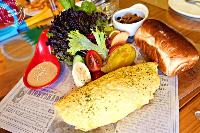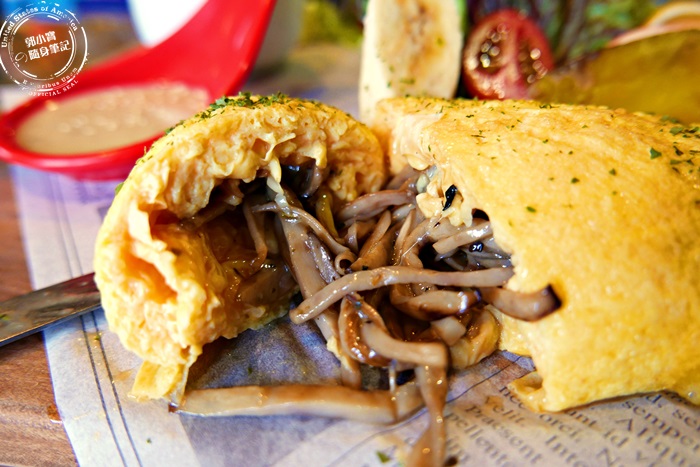 他們家的餐點名稱每一道都好長,剛剛的明太子切開是爆漿的起司,艾編這道切開是炸開來了菇菇,除了有滿滿的菇還有起司,菇菇的部分有先炒過,味道之香口味算清淡適中,配上起司的香濃還有那厚蛋捲的軟綿滑口,味道香氣口感完全沒話說,素食的朋友可以吃唷! |
