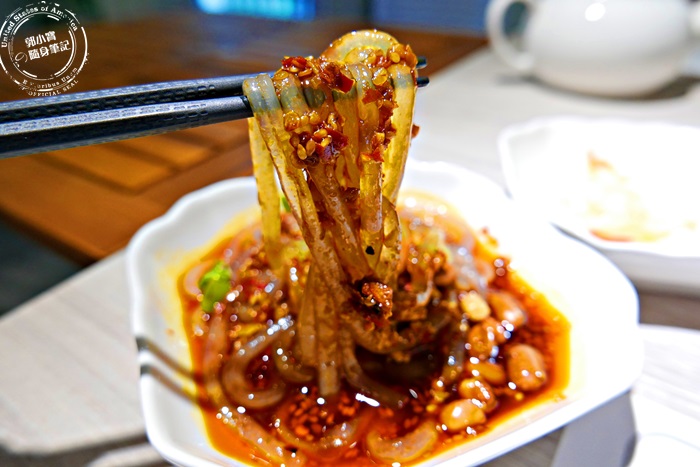 紅通通的川味涼粉味道很好,酸酸辣辣的香氣好過癮,道地的酸辣粉口感超Q彈,好滑口,吸足了醬汁超夠味的,開胃小菜很用心,很有水準。 |