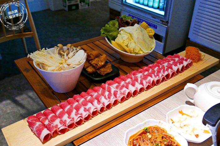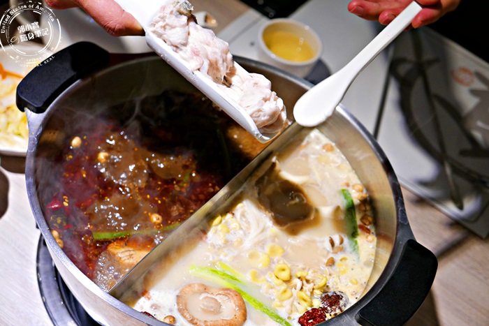 肉片一上桌艾編就迫不及待的要下鍋囉!攤開來的肉片其實也蠻大塊,可以捲的起來的肉片都有一定的厚度,不是那種非常薄很鬆散的樣子,這點很重要,代表他們家對待客人不隨便,讓客人吃肉吃的滿足,吃到撐離開,整個吃好吃滿,趕快把肉片下鍋吧!放麻辣放養生全看各人喜好唷! |