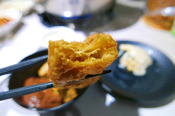 他們家的老油條口感較普通,堅挺硬脆的外衣浸泡在火鍋裡頭,吸湯汁的速度緩慢,因為每塊老油條的構造些許不同,有些真的外表都已經泡爛了裡頭還完好無缺,儘管不停的翻動老油條,泡的時間也長,還是沒有辦法平均的吸收湯汁,所以口感吃起來沒有太驚艷,可能改點科學麵會比較好唷! |