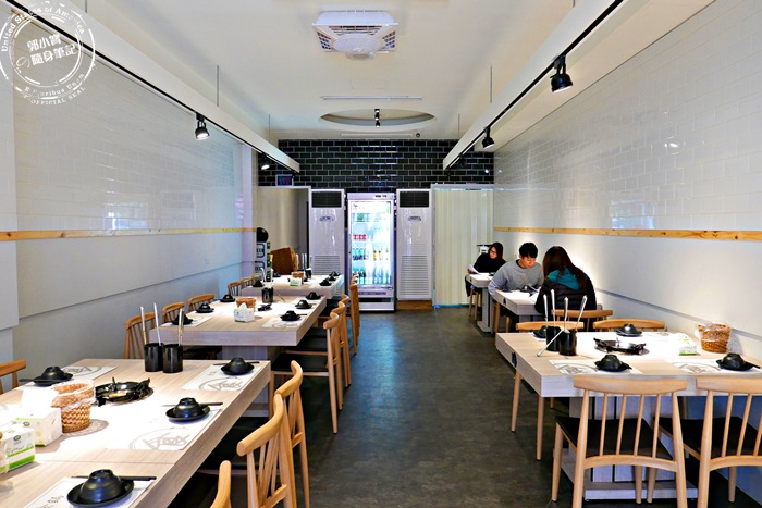 店員帶位後會直接在桌子旁邊在多放上一張小折疊桌,主要就是等等要放食材的,兩人桌的桌子大歸大,可用的空間有限,額外有個小桌子才不至於太過壅擠。 |