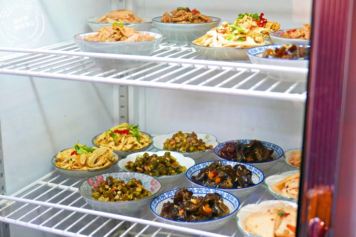 冰箱裡有很多店家自製的小菜,可以自行取用,小菜有分大小盤,價位不一樣,取用的時候可以先問一下老闆娘,看看他們家的小菜,擺盤多精美,容器很搭配店家的復古,滿到尖起的小山丘,這份量好滿足唷! |