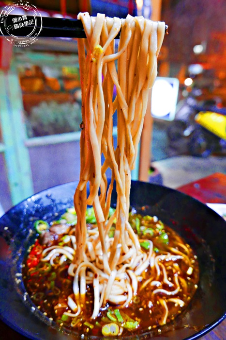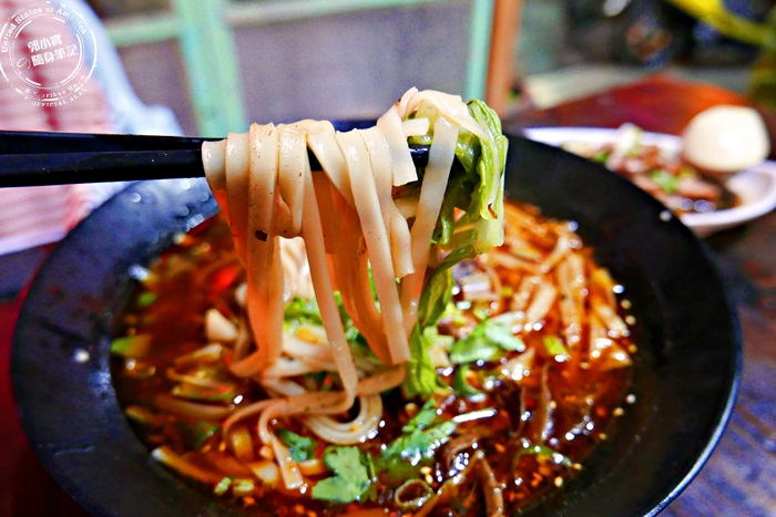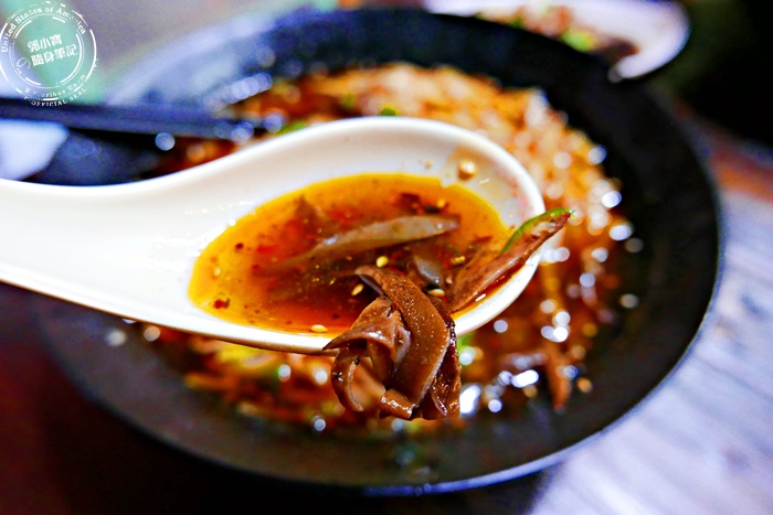 湯頭的部分滿滿的香料,香氣很足,上頭浮上一層辣油,紅通通的好像很辣一樣,但其實不會,味道之香,帶點微微的酸度,非常和諧美妙的衝擊味蕾,光是喝湯都是種享受,調味不會太重,非常的剛好,加上白芝麻的點綴還有黑木耳的脆口,整碗吃起來非常的豐富,份量超大超滿足。 |