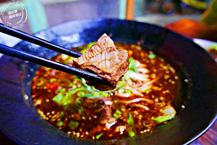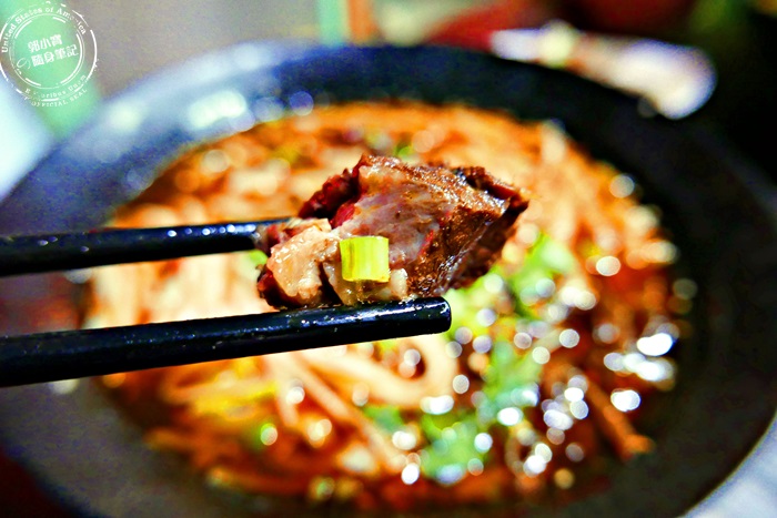 牛肉的部分跟剛剛的酸辣牛是一樣的,大塊滿足,既然他們家的牛肉麵是冠軍,就一定要來品嚐看看,麻辣的香氣讓牛肉增添風味,有別於一般的牛肉麵,一般常見的都是用牛腱肉滷製而成的,他們家比較下重本用牛肋條,軟嫩的口感讓人一吃就愛上。 |