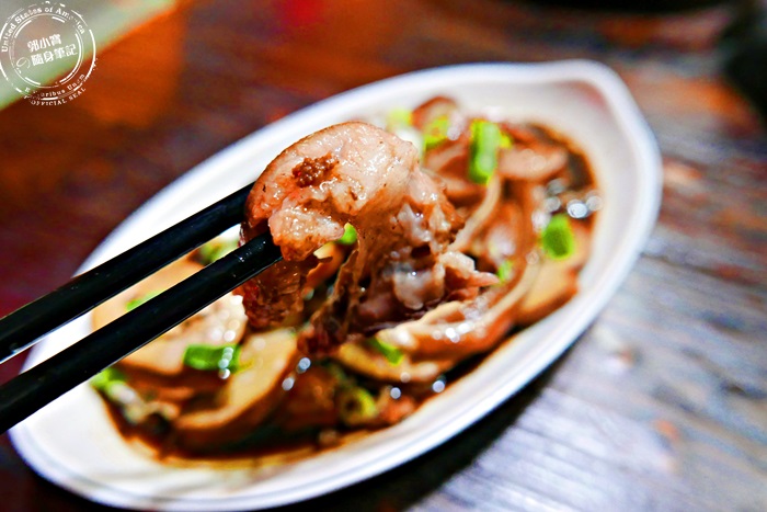 這個拼盤裡面只有素雞跟豬頭皮,豬頭皮吃起來非常的軟嫩,而且有滿滿膠質的感覺,滷過的香氣跟味道都依附在這塊豬頭皮裡面,帶點豬肉瘦肉的口感還有油脂的香甜,滑口的滋味太幸福了,還有豬耳朵柔軟帶脆骨的部分也超好吃的。 |