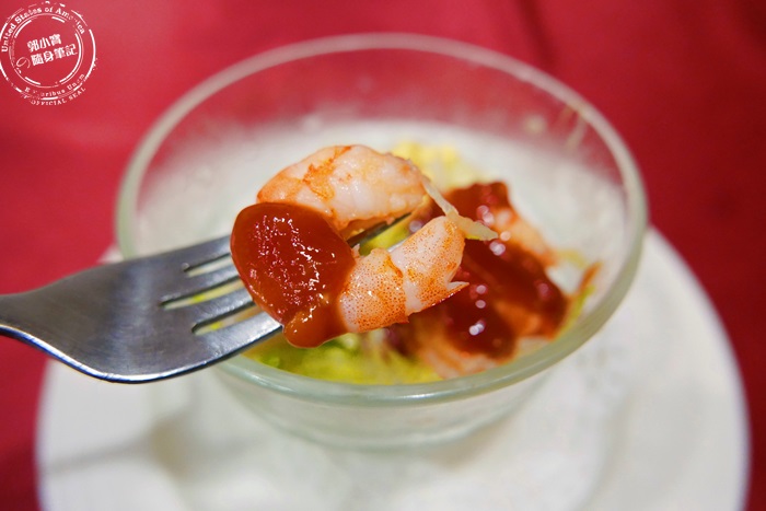 蝦子的部分是一整隻,配上添加特製的海鮮醬,滋味很迷人,艾編好喜歡,底部滿滿的生菜刨成絲,味道相當不錯,整體冰涼可口鮮味十足。 |