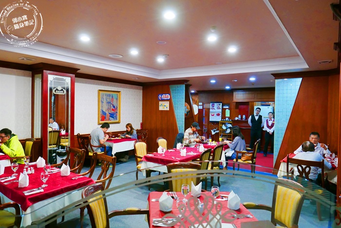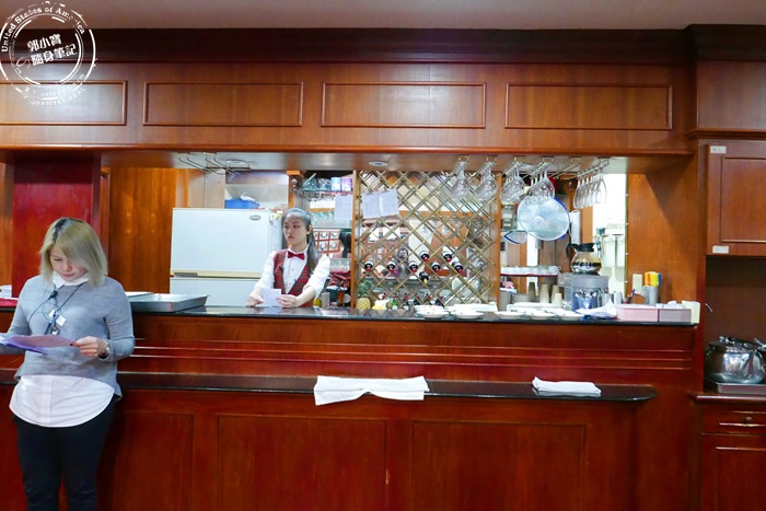 剛進來的時候會有服務人員帶位,艾編第一次進來覺得挺陌生的,還以為內用座位就是這區,入口處櫃檯隔著牆壁的這區座位,其實也蠻多人的,如果以前就有來過的朋友們,應該對這個場景不陌生吧!非常復古的氣氛,進來一點也不覺得是很老舊的西餐廳,還有西裝筆挺的服務員,害得艾編我不敢怠慢,連帶位時都緊緊跟在服務員身後。 |