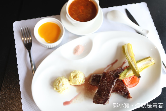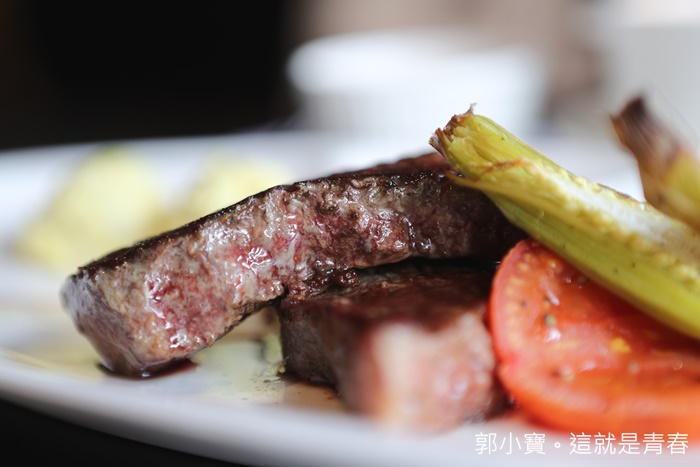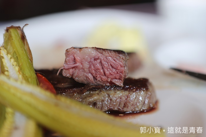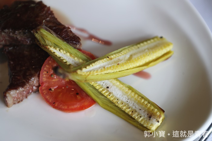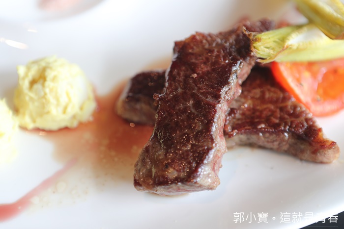 主餐的牛肉看起來很厲害,大雄和牛最早就是以美國和牛為出發點的,他們對自己家的牛肉品質相當有信心,端上桌來的時候真的是香氣撲鼻,熟度剛剛好,記得趁熱食用,一下子血水就開始慢慢地滲出來。 |