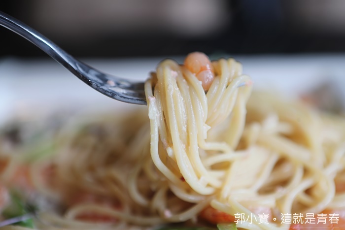 這義大利麵似乎也加了奶油,重點讓人驚豔的是明太子也放滿多的,每一口都有奶香味以外,那巴在義大利麵上的明太子增加整體口感的豐富度,相當不錯呢! |