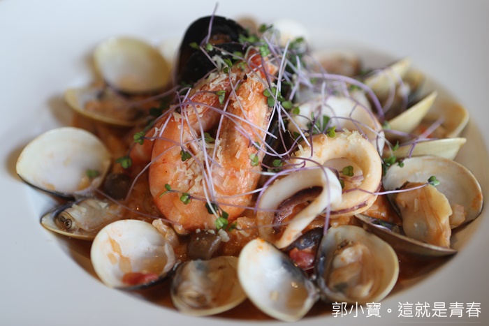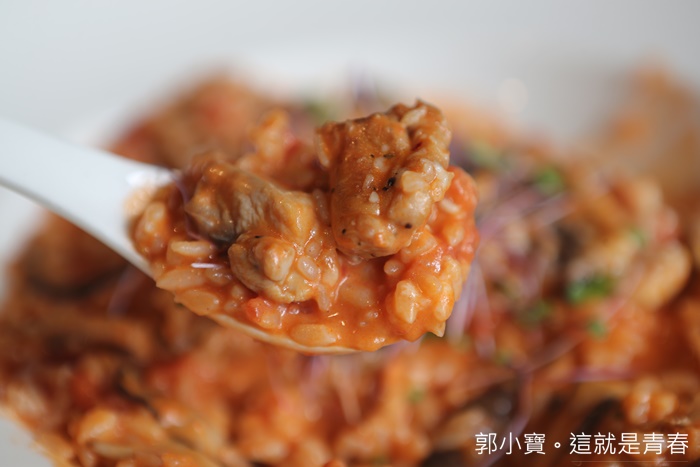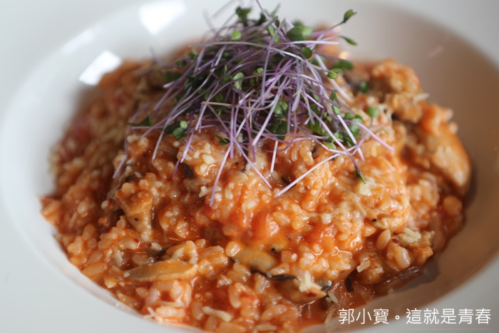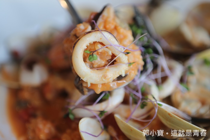 海鮮的新鮮度品質都非常不錯以外,就連花枝的口感都讓我有驚訝到,彈牙有勁又不會咬不斷,底下的燉飯搭配起來也是酸甜滋味,感覺是番茄燉飯,整體上吃到超飽的。 |