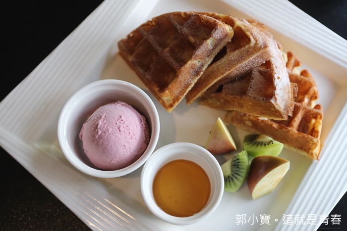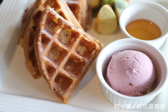 整體上就是安全牌的鬆餅組合,但是如果有一點奶油的話會更好,除了鬆餅以外還有冰淇淋、水果、蜂蜜。 |