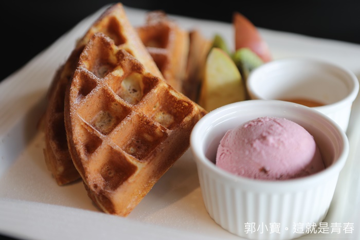 因為一路聊天聊得太開心,所以有點不好意思的點了下午茶大家一起分食,下午茶時段只有提供一些甜點跟點心,沒有熱食跟其他餐點,我們點了一個簡單的水果鬆餅。 |