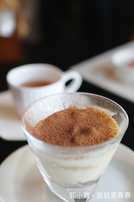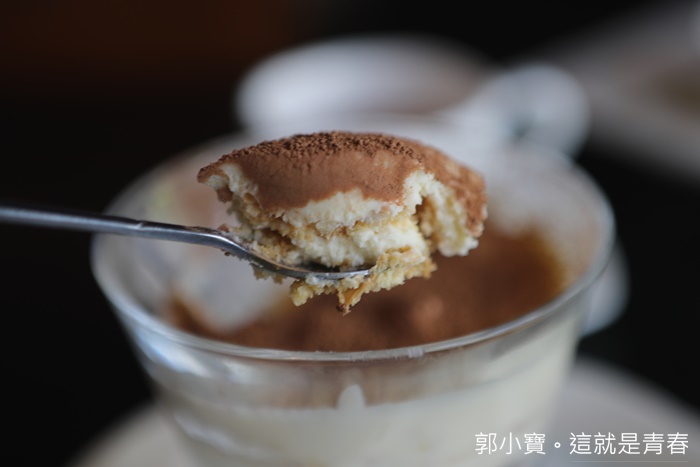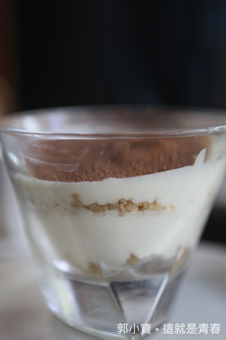 另一個下午茶甜點比較受到女生的歡迎,因為這提拉米蘇真的份量滿重量級的,滿滿的超大一杯,用看的就覺得很療癒,據說是隱藏版的下午茶甜點,從側面看這提拉米蘇真的滿深的,放在大口杯的威士忌杯顯現出他的霸氣XDDDD |