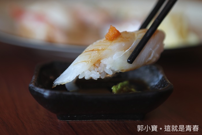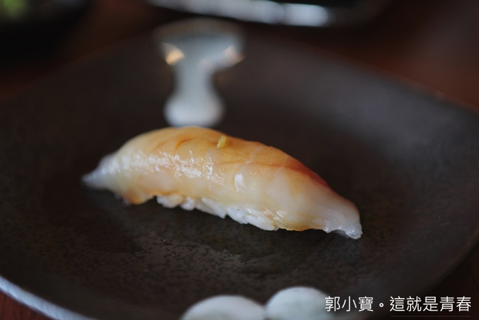 帶點韌性的口感非常的耐嚼,咀嚼起來可以品嘗到鮮甜的海鮮味,沒有惱人的魚腥味,試了一片沒有沾山葵跟醬油的太刀,細細咀嚼真的會慢慢散發出甘甜味,非常美味。 |