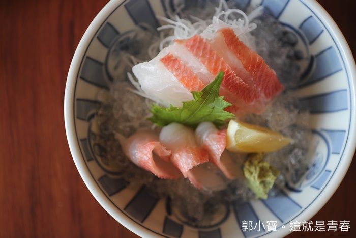 我在台灣鮮少吃到讓我滿意的金目鯛生魚片,但是這裡真的讓我挺滿意的,金目鯛生魚片擁有的優點都有表現出來,金目鯛最主要的特色有背部和腹部兩個部位的肉質,一個油脂豐富軟嫩滑口,一個肉質甜且脆爽,兩個都各有特色,因為店家沒有特別強調是哪個部位,我吃起來的帶點Q彈的爽脆感,夏天吃剛剛好!! |